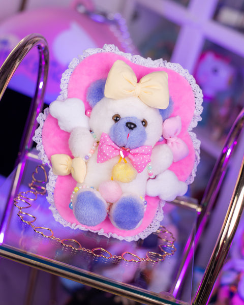 The custom Teddy Bear Bag I made in my Youtube video. One of a kind. Since handmade I cannot guarantee the durability of the items. Please handle with care.